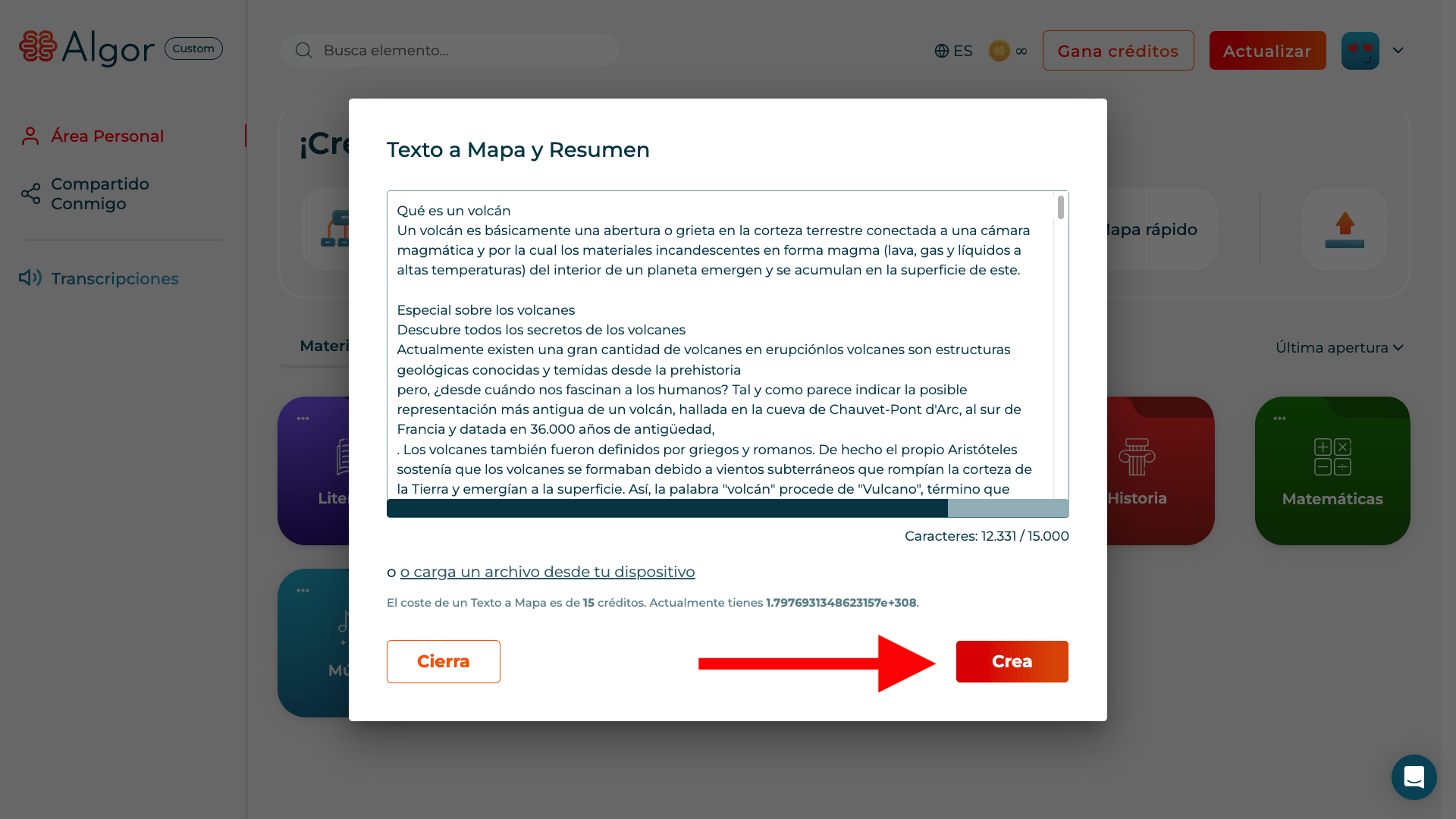 ¿Quieres probar de inmediato esta funcionalidad de Algor? ¿Y crear un mapa automáticamente a partir de un texto? Si te da curiosidad, es muy fácil!
